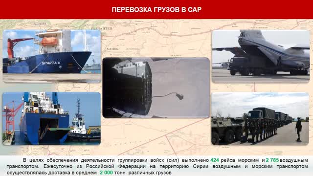 Ежесуточно из России в Сирию воздушным и морским транспортом доставлялось в среднем две тысячи тонн различных грузов.