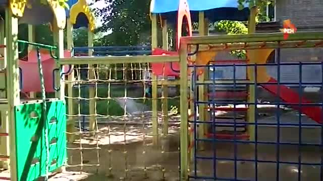 Могильная плита расположена на той же территории, что детские качели и горки. Памятник посвящен местному криминальному авторитету Константину Беркуту, который был расстрелян в 1999 году.