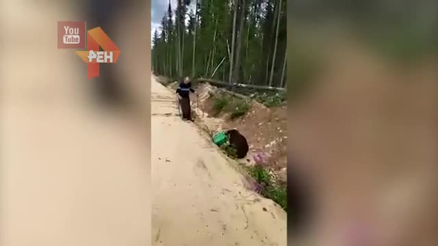 Напомним, ранее в Сети появился ролик, на котором запечатлен медведь, застрявший головой в канистре. Двое мужчин пытались ему помочь и не смогли, в итоге животное скрылось в лесу.