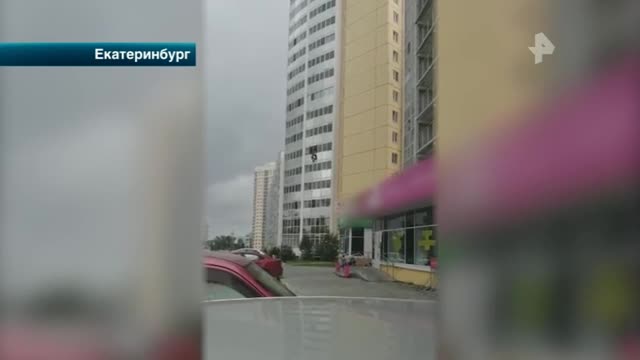 Школьники в Екатеринбурге свешивались с карниза дома ради забавы