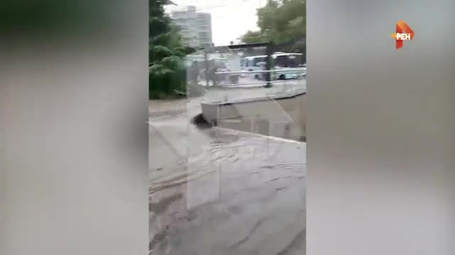 Очевидцы засняли, как сильный ливень "превратил" Ялту в Венецию