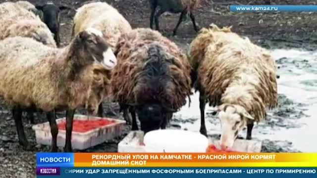 Эти фото, где красной икрой кормят домашний скот, выложил один из фермеров села Усть-Большерецк. Еще не законченная путина в два раза перекрыла абсолютное достижение 2012 года — тогда на Камчатке добыли 254 тонны рыбы, сейчас уже 476 тонн.