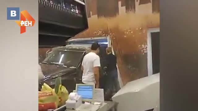 В распоряжении РЕН ТВ появились фото внедорожника, протаранившего супермаркет в Петербурге.