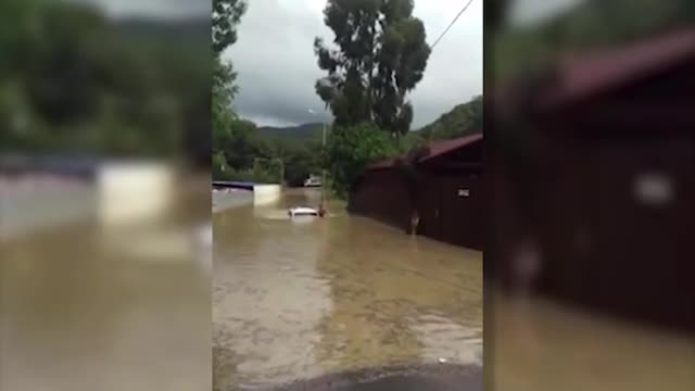 Видео: автомобиль утонул в огромной луже после ливней в Сочи