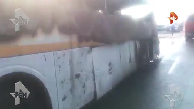 РЕН ТВ публикует видеозапись, сделанную на месте страшного пожара, охватившего пассажирский автобус в Подмосковье.