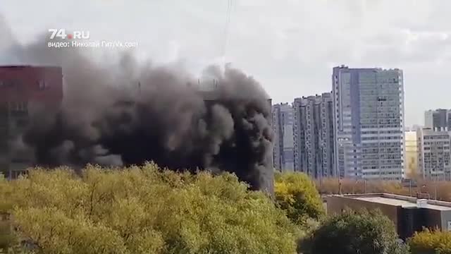 Видео: в жилом доме Челябинска произошел крупный пожар