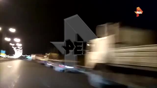 Видео: грузовики выстроились в колонну и готовы к началу движения по Крымскому мосту