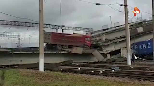 В Амурской области 9 октября виадук обрушился на железнодорожные пути. Инцидент произошел в городе Свободный, когда по путепроводу двигался большегруз.