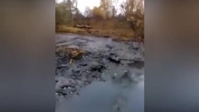 На видео, опубликованном изданием, видно, что земля пропитана черным веществом. Лужи также имеют черный цвет. Издание предполагает, что в данном месте произошла утечка мазута.