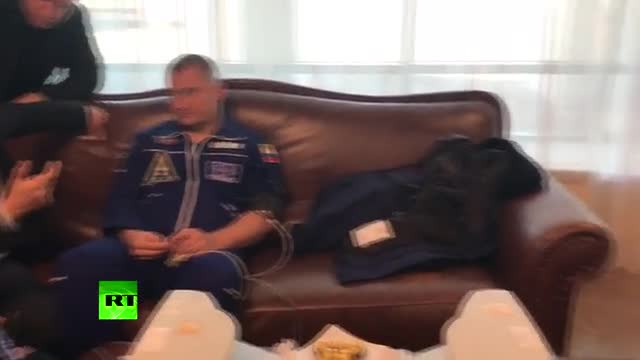 Овчинин и Хейг смогли отдохнуть после аварийного приземления и переговорить с главой Роскосмоса Дмитрием Рогозиным.