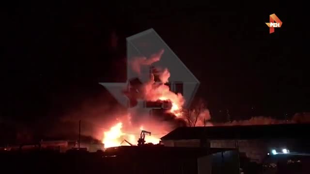 Между тем, очевидцы сообщают, что от горящего ангара доносятся звуки хлопков. По предварительным данным, в нем хранятся шины и бочки с горючим материалом.