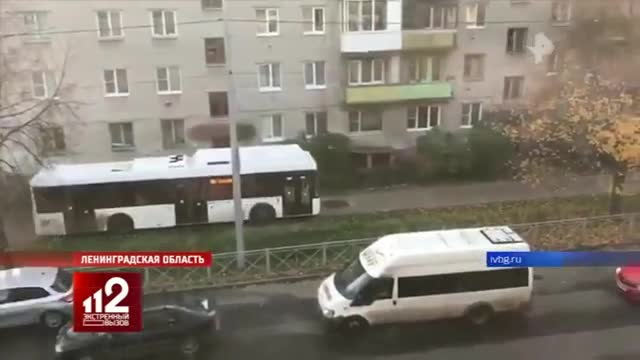 Видео: в Ленинградской области "пьяный" автобус ехал по газону и пешеходной дорожке