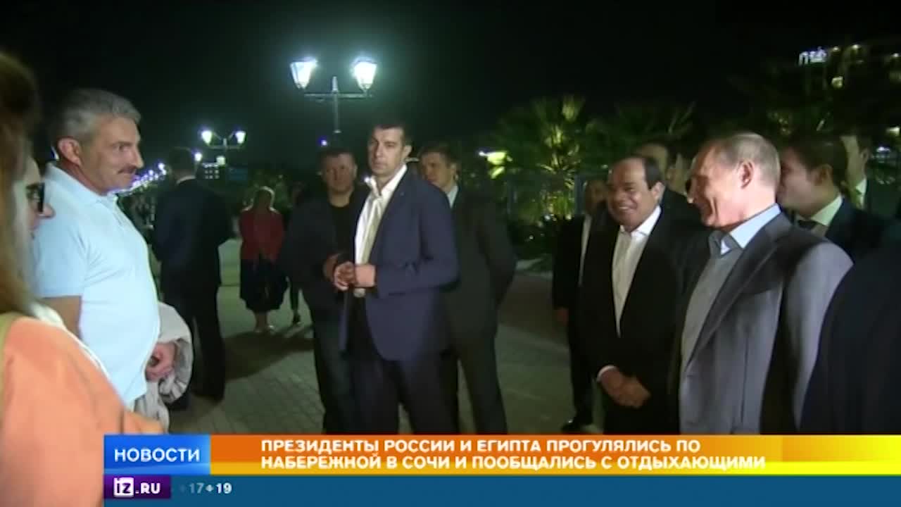 Путин и глава Египта прогулялись по набережной Сочи и познакомились с отдыхающими