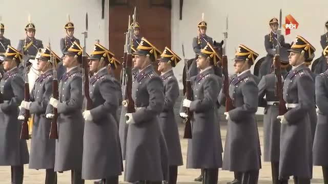 Караулы выступают под музыкальное сопровождение Президентского оркестра. На этот раз изюминкой выступления стала композиция на тему "Калинки-Малинки".