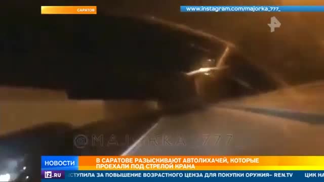 Саратовская полиция сегодня начала розыск героев жуткого видео. Этот ролик появился на канале мажорка-77, где автолихачи хвалятся своими выходками. Эти хамы перекрыли всех предшественников, проехав под стрелой автокрана.