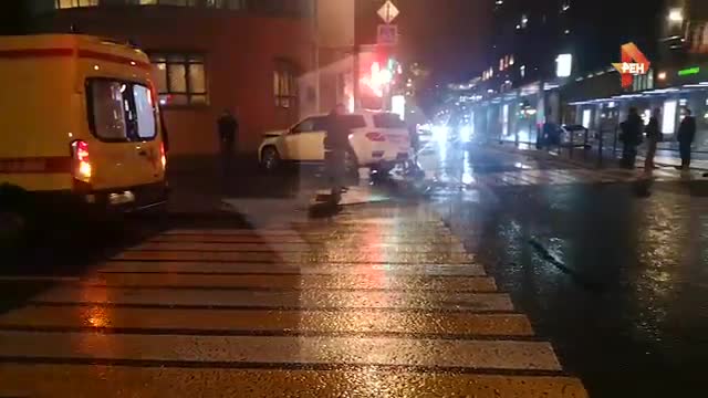 Видео: иномарка вылетела с дороги в ДТП в центре Москвы