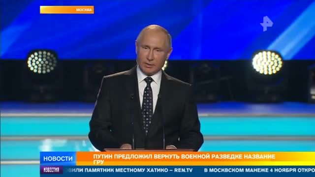 "Поздравляю вас с наступающим профессиональным праздником – Днем военного разведчика и 100-летием легендарного ГРУ, ныне Главного управления Генерального штаба Вооруженных Сил России. Непонятно, куда исчезло слово "Главное разведывательное управление". Надо бы восстановить. Разведка – неотъемлемая часть воинского дела, ратной науки. Так было всегда, на протяжении веков, и везде", - отметил президент.