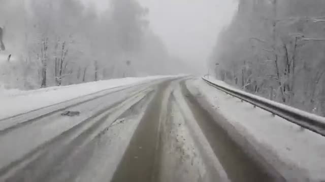 Видео: десятки фур оказались в снежном плену из-за сильного снегопада
