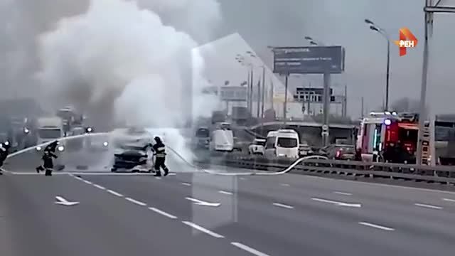 Видео: автомобиль, перевозивший газовые баллоны, загорелся на юго-востоке Москвы