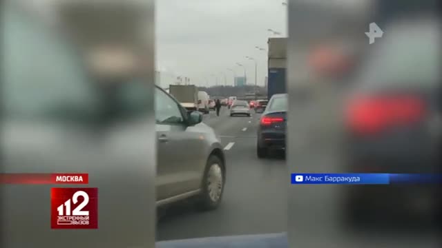 Москве автомобилист снял на видео очень странную молодую пару. Они устроили ссору прямо посреди оживленного шоссе.