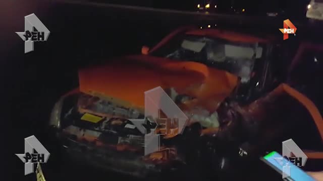 РЕН ТВ публикует видео с места столкновения двух автомобилей в Каякентском районе Дагестана.