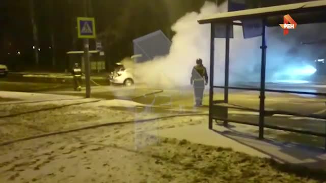 Очевидцы сняли на видео последствия столкновения машин на улице Академика Варги, дом 20. Видно, что один из поврежденных автомобилей горит, рядом стоит машина пожарных.