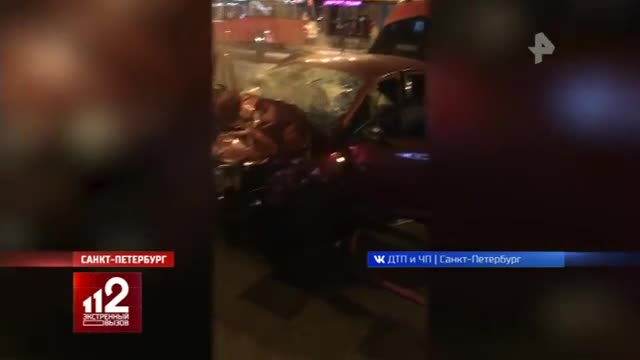 Опубликованы кадры смертельного ДТП в Петербурге. После столкновения машины загорелись — погибло два человека.