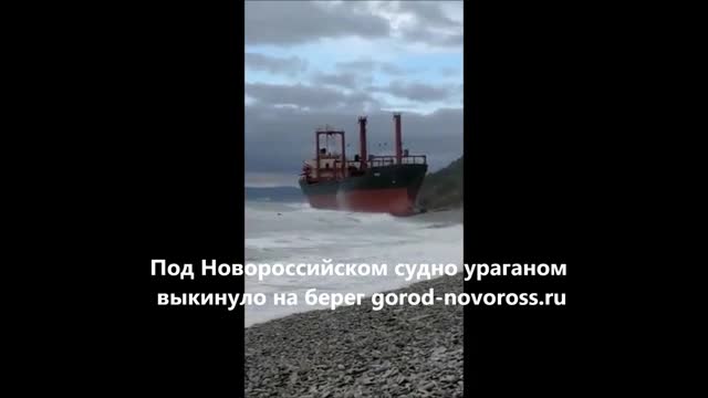 Видео: теплоход во время шторма выбросило на берег под Новороссийском