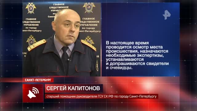 Старший помощник руководителя ГСУ СК РФ по Санкт-Петербургу Сергей Капитонов заявил, что в настоящее время сотрудники ведомства проводят осмотр места происшествия и необходимые экспертизы. Устанавливаются и допрашиваются свидетели и очевидцы.