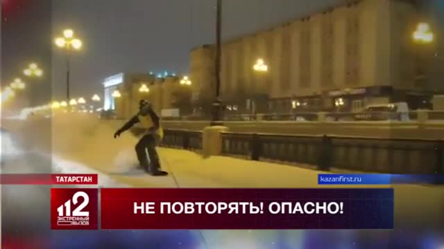 Видео: Сноубордисты устроили опасный "заезд" по дорогам с помощью троса и авто