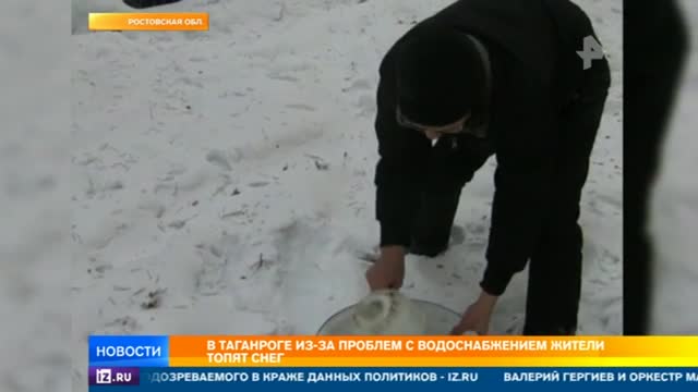 А жителям Таганрога сейчас снег нужен чтобы выжить. Горожане собирают его прямо возле подъездов и растапливают в кастрюлях- водоснабжение в квартирах практически отсутствует. Из-за непогоды на местном водозаборе резко упало давление - и напора в кранах почти нет.