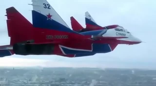 Пилот МиГ-29 с крыла снял полет "Стрижей" на параде в Петербурге