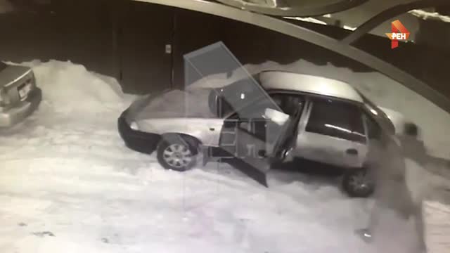 Как видно на обнародованных кадрах, в машине происходит потасовка, после которой водитель вылетает на улицу с битой в руках.