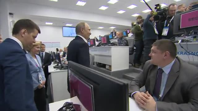 Как сообщает ТАСС, российский лидер посетил операционный центр, расположенный в помещениях Сибирского федерального университета. Там на большие экраны выводятся записи с камер, которые снимают места соревнований и деревню Универсиады. Это позволяет МВД, ФСБ и МИД в реальном времени наблюдать за происходящим.