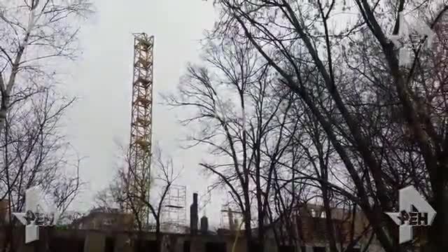РЕН ТВ публикует видео с места падения башенного крана в Москве.