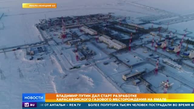 Сегодня, 20 марта, Владимир Путин дал старт полномасштабному освоению Харасавэйского месторождения "Газпрома" на Ямале. Это уникальный по запасам углеводородов шельф — 2 триллиона кубометров. Как выглядит месторождение, на котором можно будет добывать газ до 2131 года, — в материале РЕН ТВ.