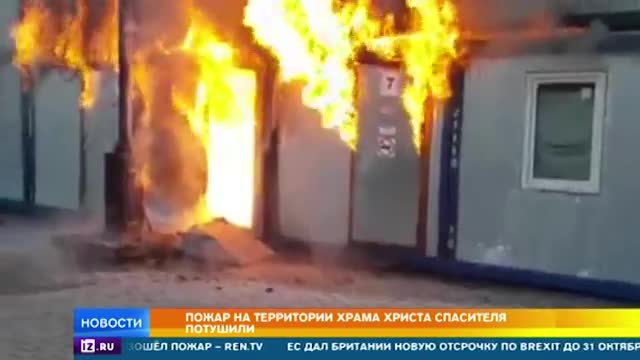 Возгорание произошло в бытовках, расположенных рядом с храмом Христа Спасителя.