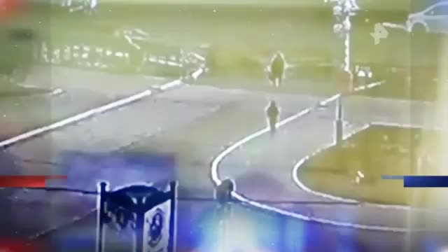 Камера наблюдения зафиксировала, как животное кусает школьницу за ногу и быстро убегает. Кажется, ученица даже не успела понять, что произошло.