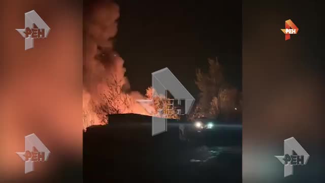 РЕН ТВ публикует кадры с места пожара в подмосковном Красногорске.