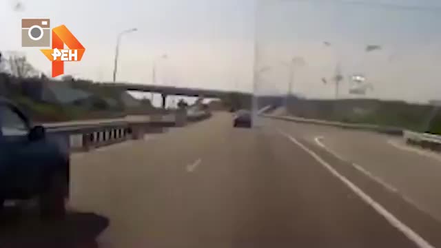 Водитель автомобиля не заметил стоящий в левом ряду грузовик и на полной скорости врезался в него.