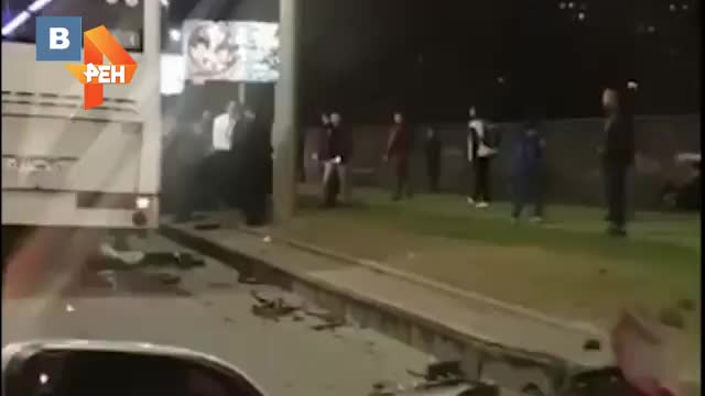 Авария произошла в районе дома 4 на улице Высотной. По предварительным данным, водитель BMW 520 по касательной столкнулся с Mazda 6 и Volkswagen, а затем выехал на встречную полосу и влетел в автобус НефАЗ, в котором было восемь пассажиров.