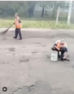 В Сети обсуждают кадры с рабочим, который "сушил" перед ремонтом яму на дороге при помощи ведра и тряпки. Инцидент произошел в городе Свободный Амурской области.