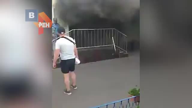 Видео: торговый павильон загорелся на рынке в Петербурге