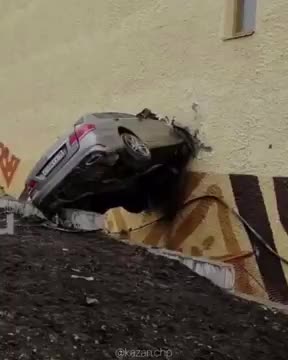 Видео: Mercedes "взлетел" и протаранил стену зоопарка в Казани. Фото: ©