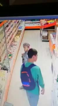 После того, как в отделе стало малолюдно, его сообщники переложили колбасу с одного прилавка на другой, после чего школьник снял рюкзак и начал укладывать палки сырокопченой прямо в портфель. После этого он спокойно закинул рюкзак за плечи и направился к выходу.