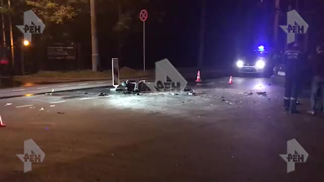 Видео: скутер сгорел дотла после столкновения с иномаркой в Москве
