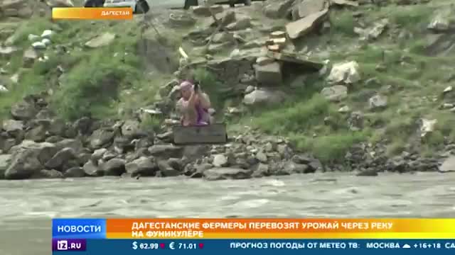 В Дагестане фермеры перевозят урожай через реку на фуникулере