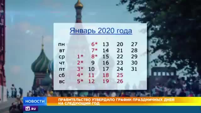 Составлен график выходных и праздничных дней на 2020 год