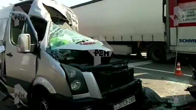 По предварительным данным, водитель микроавтобуса, следовавшего из Москвы в Азербайджан, допустил столкновение с автомобилем "Ман", движущимся в попутном направлении. В микроавтобусе находились 13 человек.