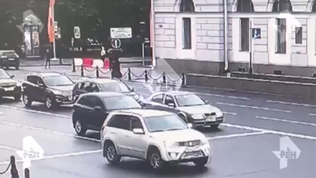 Авария произошла на Невском проспекте. На кадрах видно, как легковой автомобиль черного цвета подрезает красную иномарку. Водитель не справился с управлением и на полном ходу врезался во внедорожник на встречной полосе.